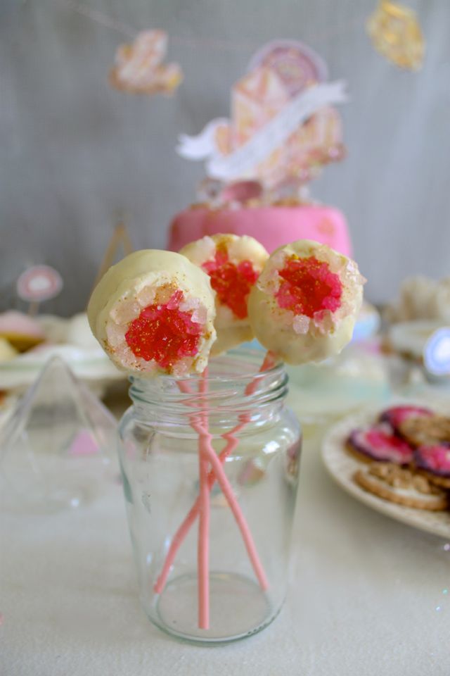 Geode Cake Pops - These tricky numbers were the cause of many sad face emojis in my party kitchen. Suffice to say, cake pops in general (amongst other things) aren't my forte, but cake icing is like the bandaid of baking so we got there in the end. Tutorial found here.